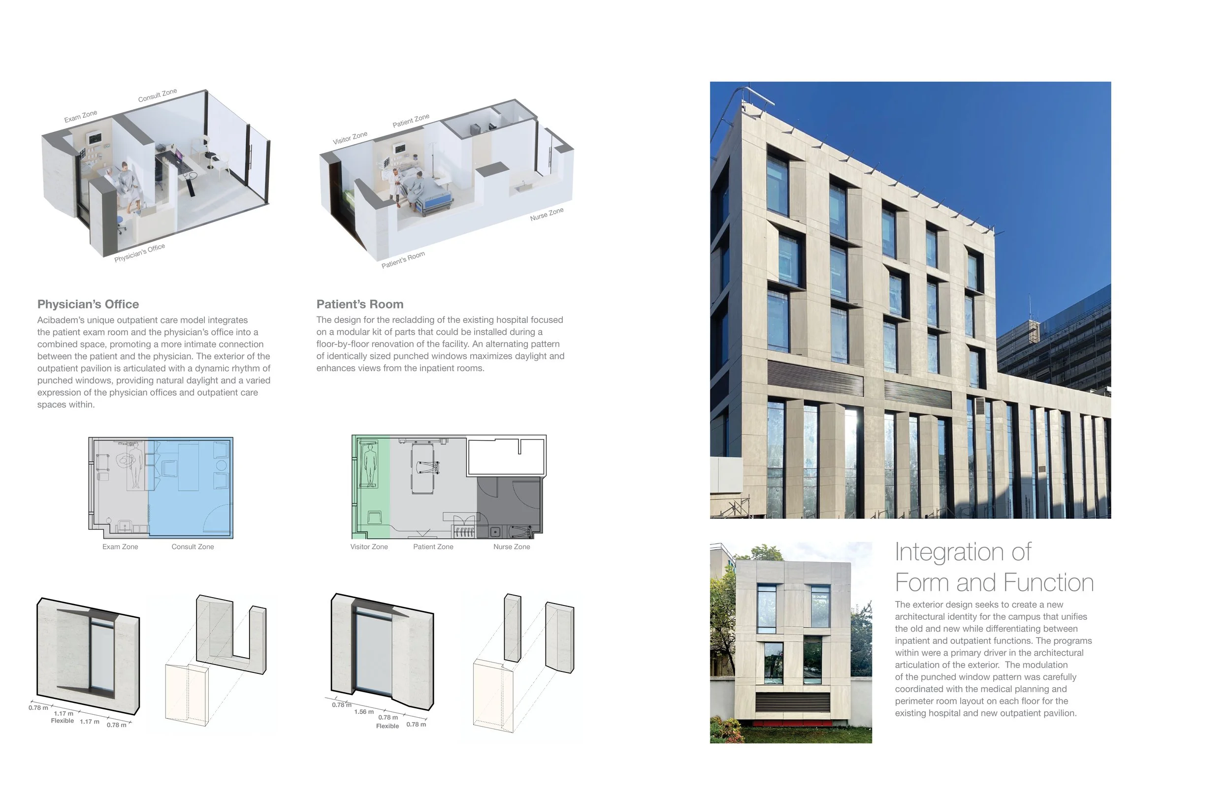 Aspiring to become Acibadem’s third LEED Gold project designed by LJC, the project incorporates numerous sustainable design strategies. The most visible sustainable feature is the reduction in glazing and focused attention on window aperture size to reduce energy costs. A rainscreen of stone panels is punctuated by punched windows differentiated in size based on internal program. The project seeks to maximize daylighting and views from patient rooms while minimizing aperture sizes to outpatient exam and clinical areas.
