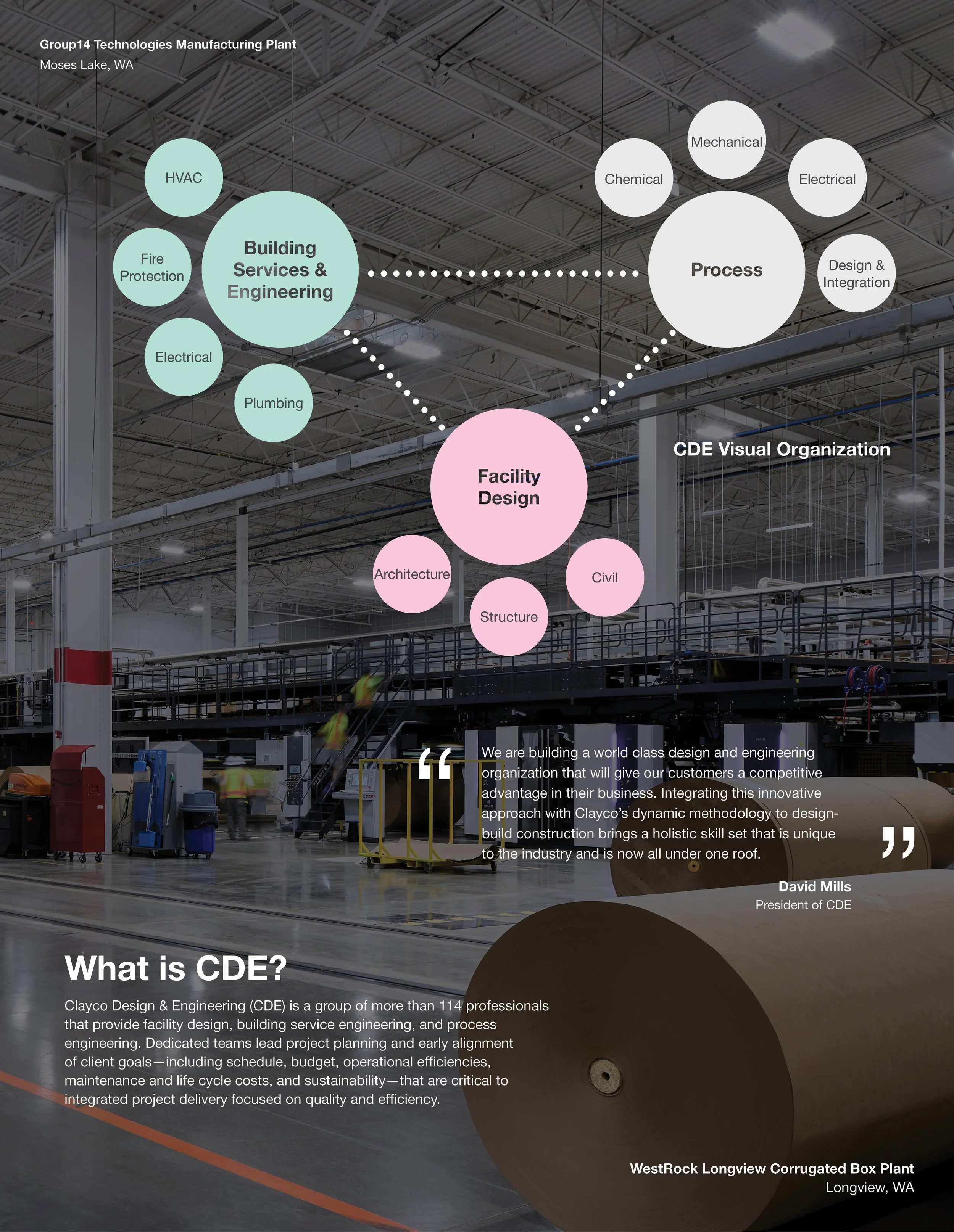 CDE is a full service design & engineering firm delivering innovative facility, building services and process engineering solutions to our clients most complex business challenges. CDE exists to fundamentally change the way the most critical capital projects are delivered to the world’s most innovative companies ensuring their products are delivered in a safe, reliable and safe manner.