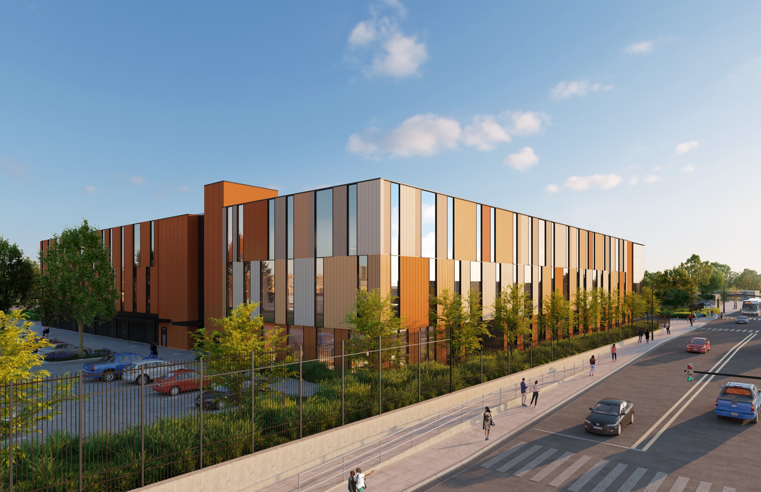 Spanning nearly 10 AC, the facility includes a 63,400 SF high-bay training area and 30,000 SF dedicated to control center operations and training. The design reflects the dynamic energy of the CTA while honoring the site's historical significance as the CTA's former steel yard. A series of precast panels create movement and texture, while the use of warm, rich tones adds a sense of vibrancy to the neighborhood. The result is a modern, efficient facility that supports the CTA's operational needs and contributes to the revitalization of the surrounding area.